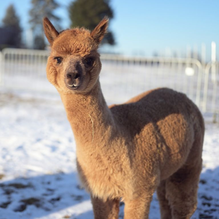 Unser Neuzugang. Er hält gerne Ausschau nach den anderen Alpakas. Antonio ist noch etwas schreckhaft und kopfscheu, hält gerne Abstand, lässt sich aber gut führen. Er läuft gerne hinter dem Chef Amadeus.